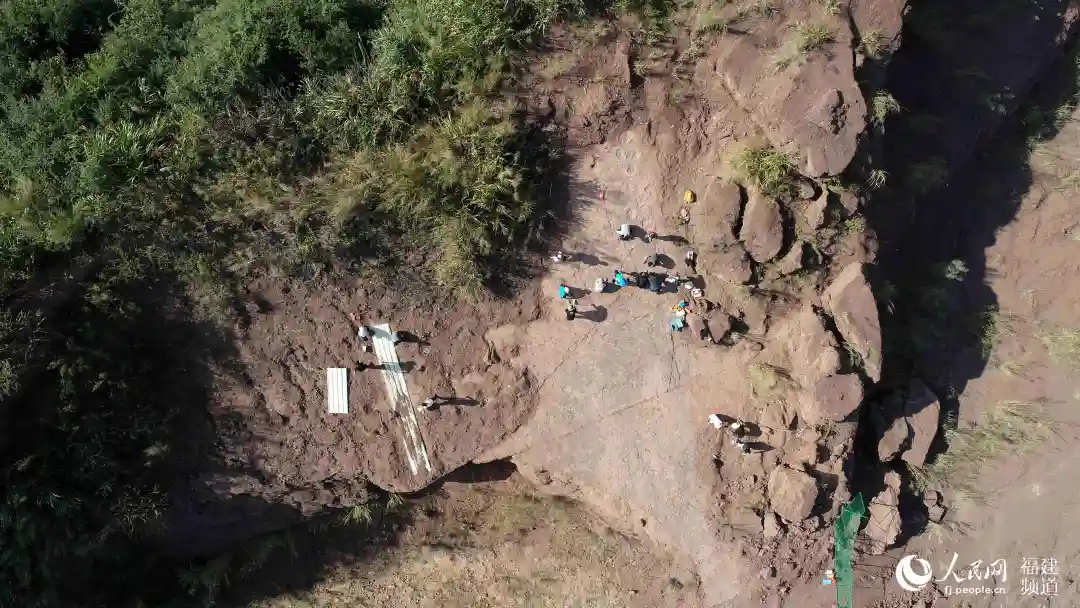 A large group of Late Cretaceous dinosaur footprints have been found in Licheng Town of Shanghang County, Longyan City in southeast China's Fujian Province on January 12, 2020.