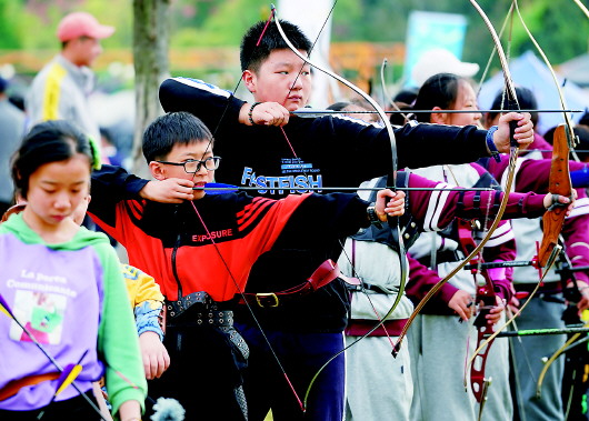 Students participate in an archery competition in Nanjing. (Xinhua/Ji Chunpeng)