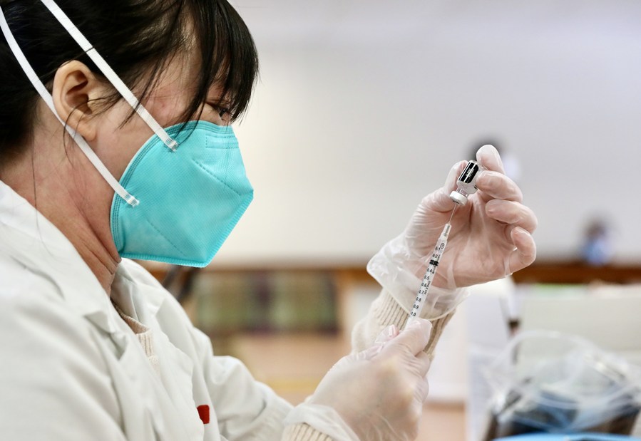 A nurse prepares to inject a dose of COVID-19 vaccine in Pasadena, Los Angeles County, California, the United States, Jan. 15, 2021. (Xinhua)
