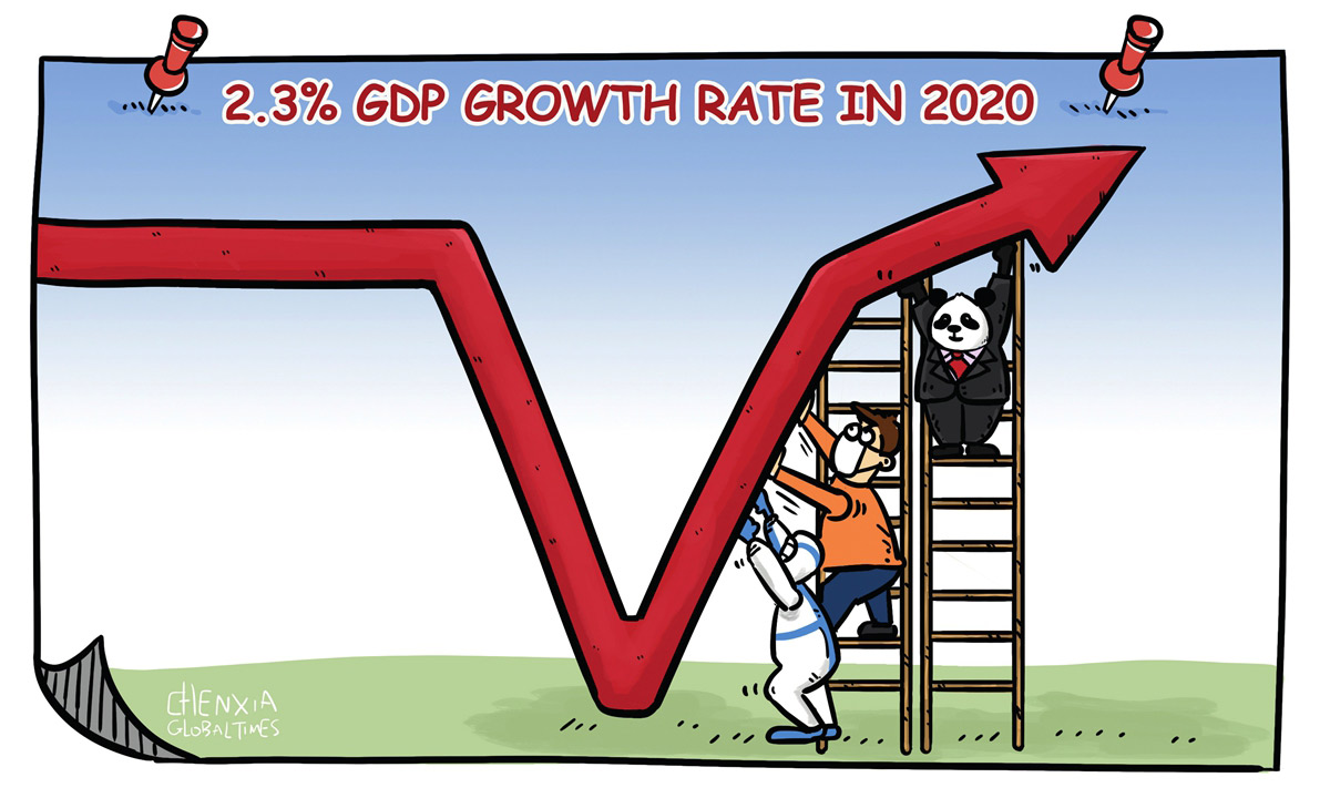 The pandemic has caused real losses and pain to Chinese society. The 2.3 percent growth reflects both the achievements in the fight against the pandemic and the costs mentioned above. We need to minimize these losses in 2021 and strive for some kind of compensation for those whose interests have been impaired. This should be an important goal of China's economic work this year. We cannot be satisfied with our relative achievements compared with other major economies.