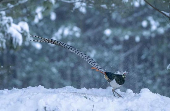 The number of Lady Amherst’s pheasants (chrysolophus amherstiae), a rare white-crested bird distinguished by its vibrant color and long tail, is on the rise in a national nature reserve in southwest China’s Yunnan province in the current winter season, staff members of the reserve and photographers have found.