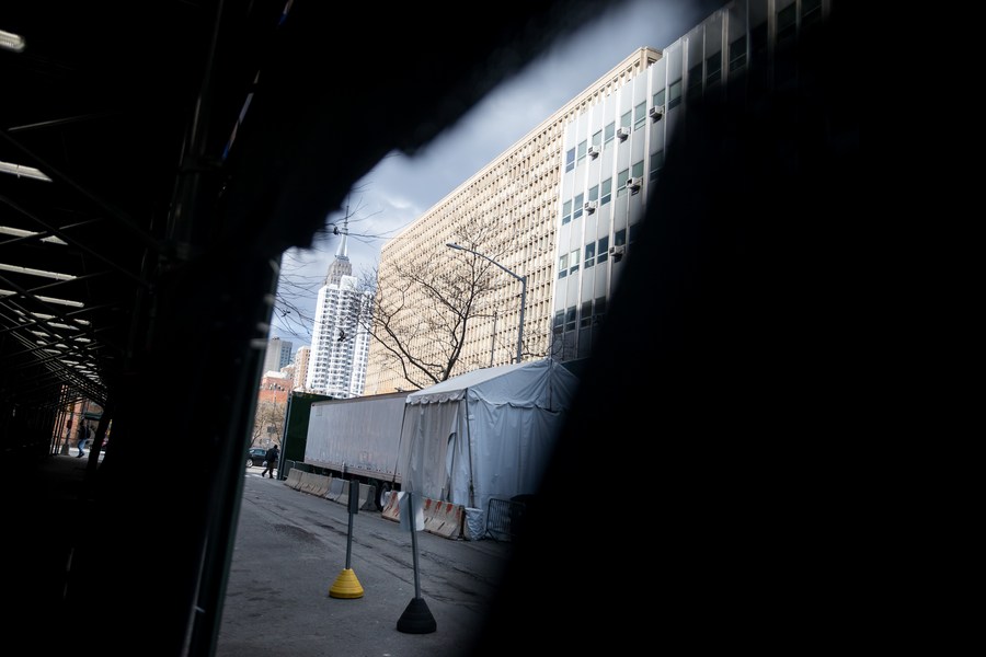 A refrigerated trailer serving as a temporary morgue is seen in New York, the United States, on Jan. 18, 2021. (Photo by Michael Nagle/Xinhua)