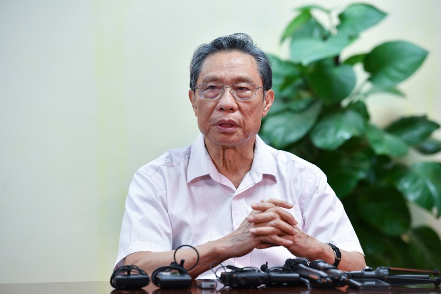 Chinese respiratory specialist Zhong Nanshan speaks in an interview in Guangzhou, south China's Guangdong Province, July 29, 2020. (Xinhua/Liu Dawei)