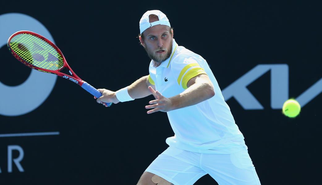 U.S. tennis player Denis Kudla tested positive for COVID-19 at the Australian Open qualifiers in Doha on Jan. 11. 2021, with officials interrupting his match to deliver the result. (Photo by Samer Alrejjal/Tennis Australia/Xinhua)