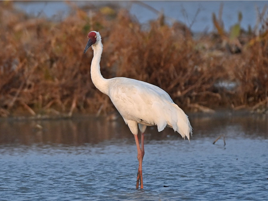 A white crane forages in shoals in Shishi Wetland Park, Quanzhou, southeast China's Fujian Province. (People's daily Online/ Tian Mi)