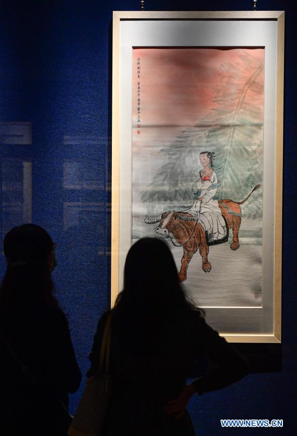 People visit an ox-themed art exhibition welcoming the Year of the Ox at Hainan Museum in Haikou, south China's Hainan Province, Feb. 9, 2021. (Xinhua/Pu Xiaoxu)