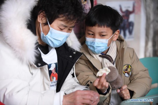 A kid makes "dumplings" at the Qinghai-Tibet Plateau Wild Zoo in Xining, northwest China's Qinghai Province, Feb. 10. 2021. The Qinghai-Tibet Plateau Wild Zoo on Wednesday organized an activity with the Qinghai Environmental Education Association to prepare "special dumplings" made of nuts, fruits and vegetables for the zoo animals, so that children interacted with small animals to celebrate the upcoming Chinese Lunar New Year. (Xinhua/Zhang Manyi)