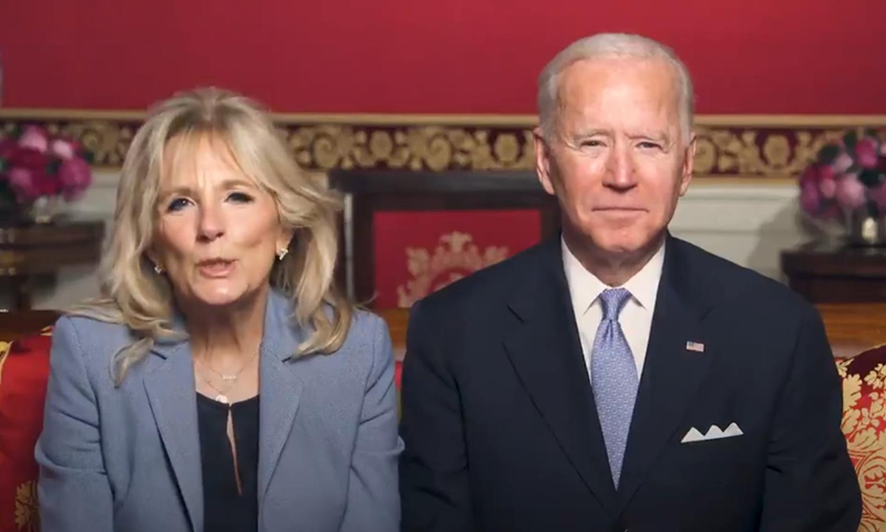 This is the first time for Biden to share a Chinese Lunar New Year greeting as the US president. Biden and his wife First Lady Jill Biden wished Asian Americans and Pacific Islanders a happy, healthy and prosperous Lunar New Year. They said on Friday via video that "racism, harassment, hate crimes" against this group of people is "simply wrong" and called for greater unity in the country.