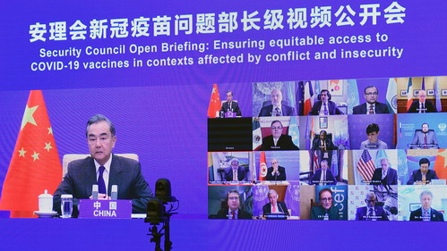 Wang made his remarks at a virtual meeting of the United Nations Security Council (UNSC) concerning the COVID-19 vaccine distribution.