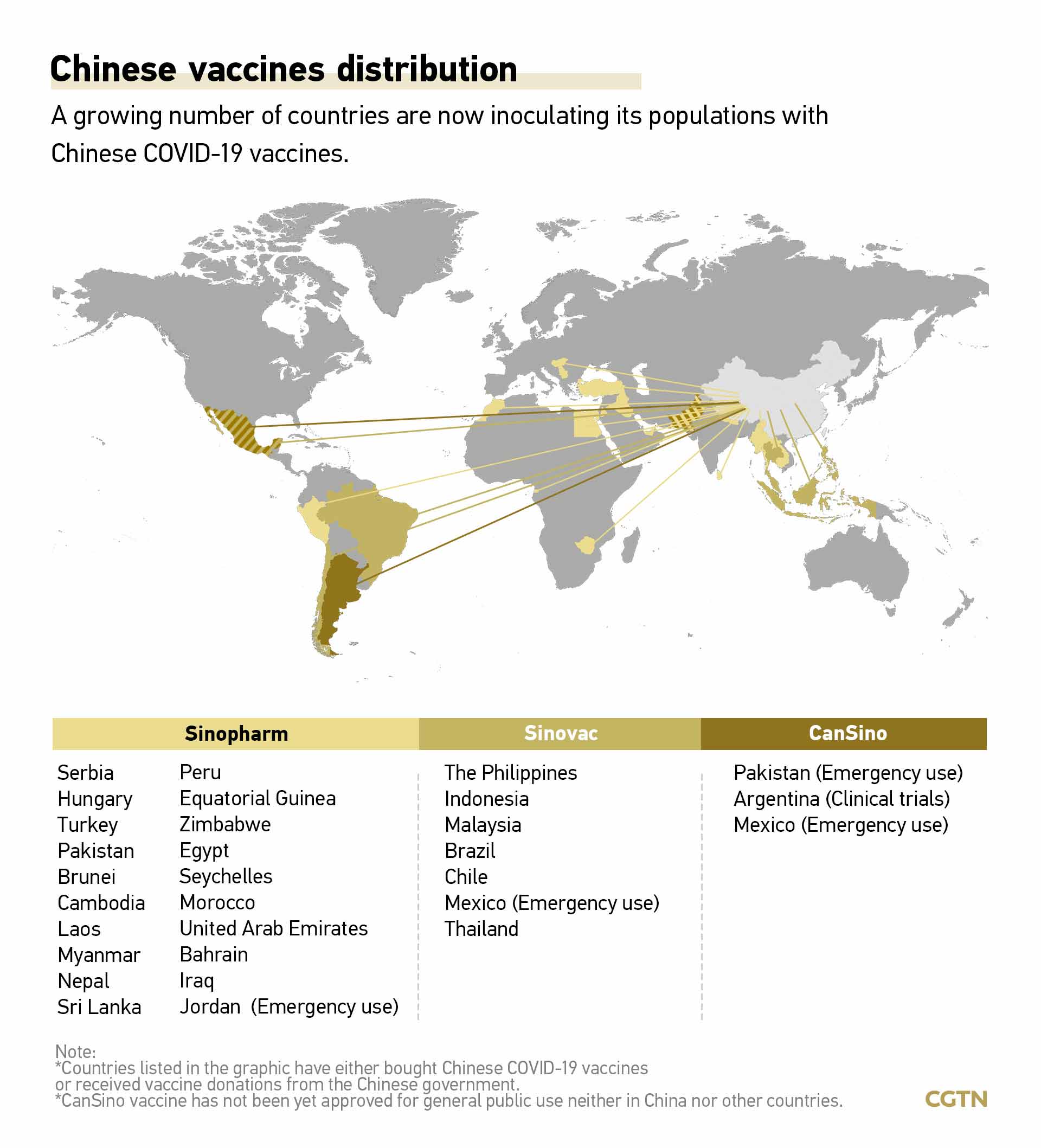 China has decided to provide 10 million COVID-19 vaccine doses to COVAX to meet the urgent needs of developing countries, said Wang. It has donated vaccines to 53 developing countries, and has exported or is in the process of exporting vaccines to 22 countries, he added.