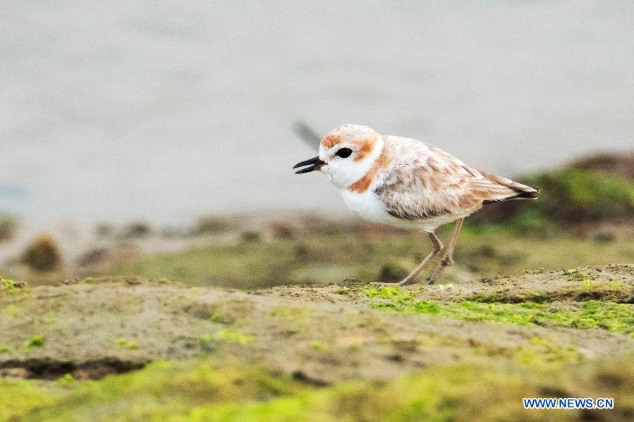 Photo shows a Malaysian plover in Singapore on Feb. 16, 2021. (Photo by Then Chih Wey/Xinhua)