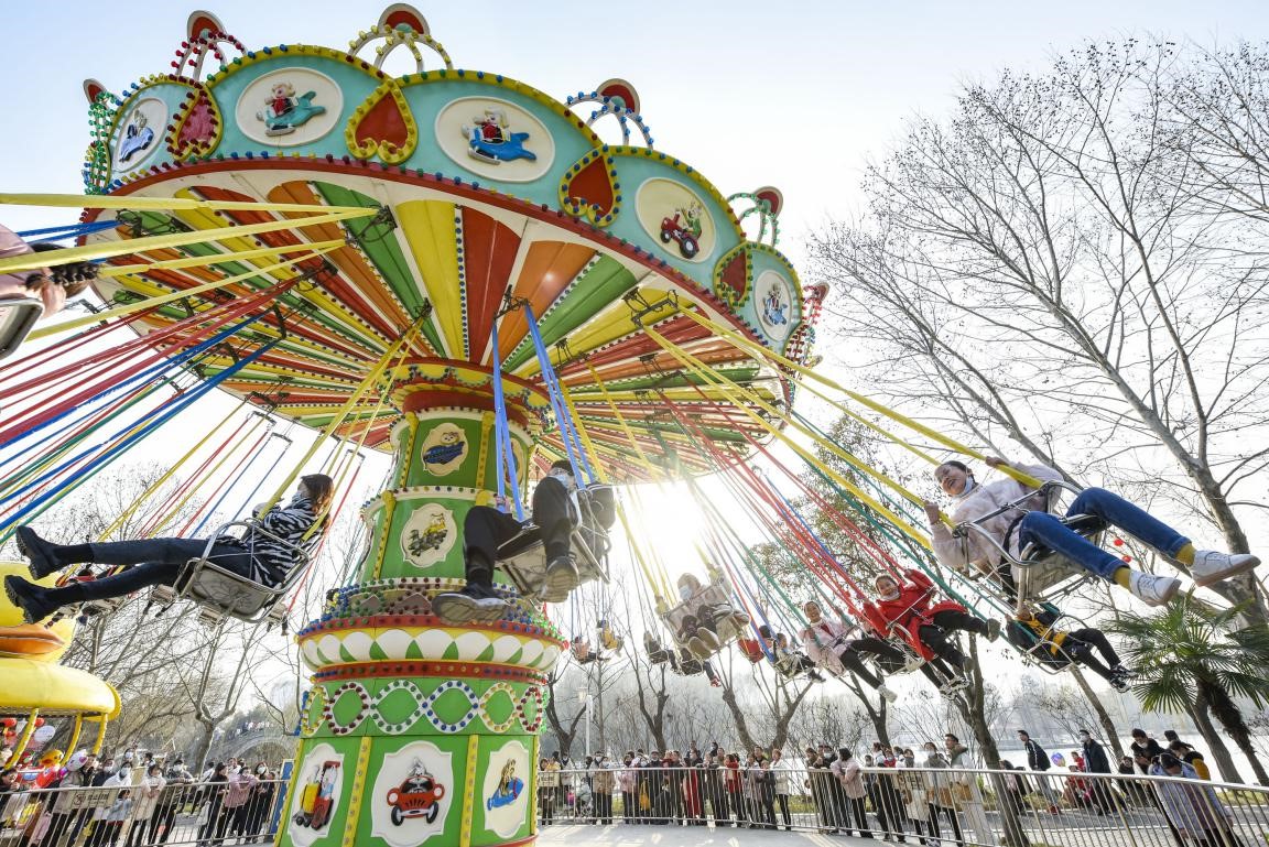 Visitors play in a park in Huai'an, east China's Jiangsu Province, Feb. 16, 2021. (People's Daily Online/He Jinghua)