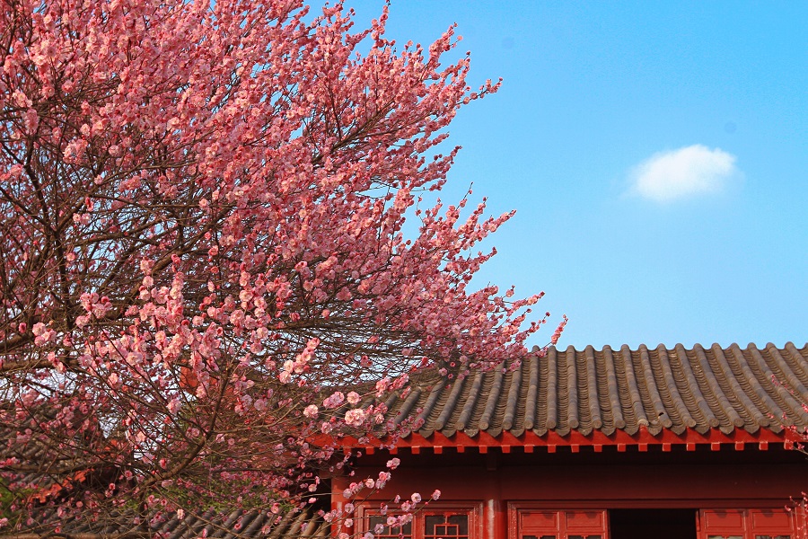 Plum trees are in bloom at East Lake Plum Garden in Wuhan, Hubei province, which has been attracting 15,000 tourist visits daily. [Photo by Zhao Li/For chinadaily.com.cn]