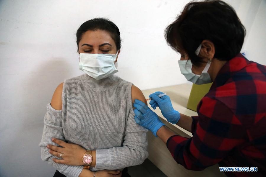 A woman receives the COVID-19 vaccine in Ankara, Turkey, on Feb. 22, 2021. (Photo by Mustafa Kaya/Xinhua)