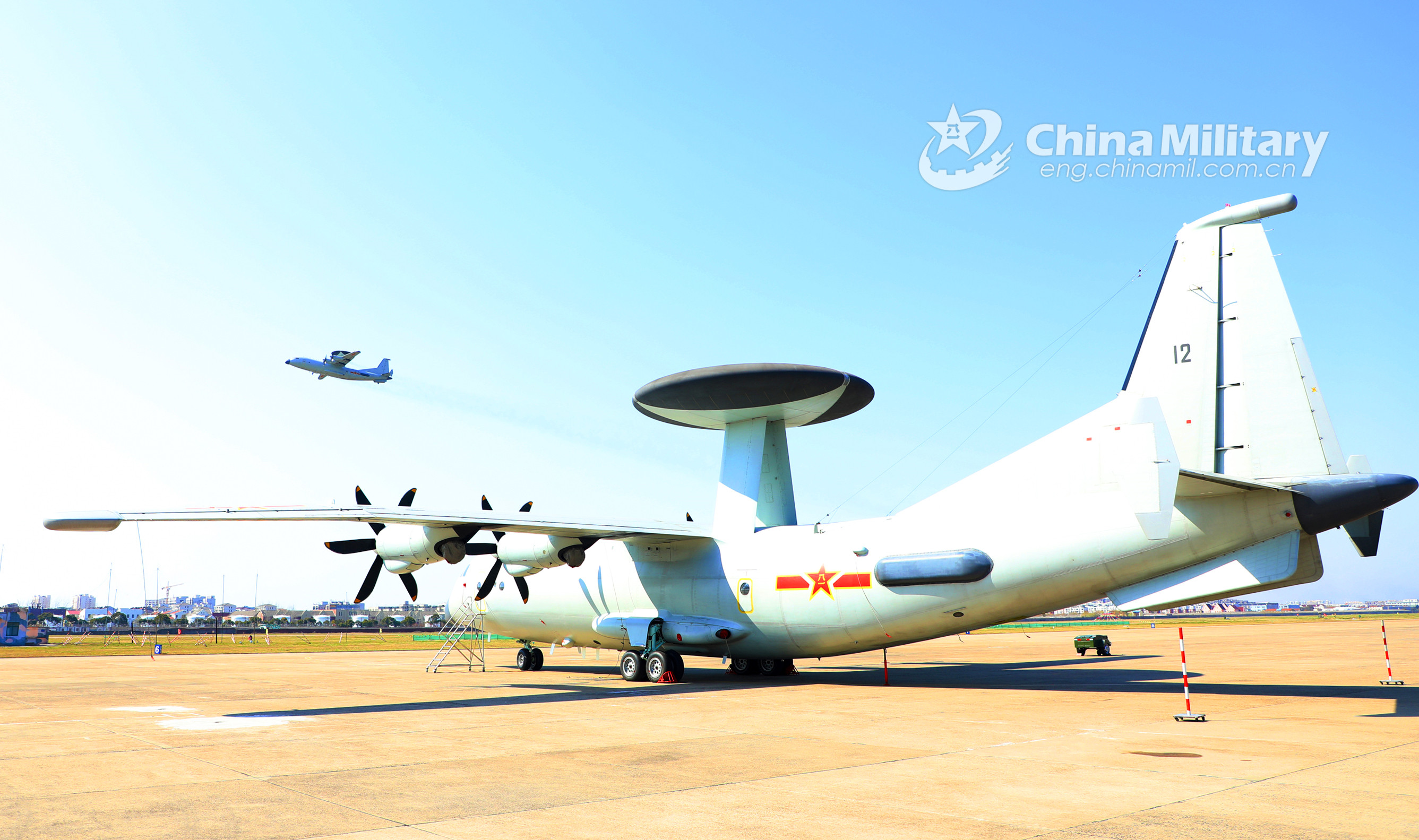 A KJ-500 airborne early warning (AEW) aircraft attached to a naval aviation division under the PLA Eastern Theater Command gets ready for a flight training exercise on subjects including reconnaissance and early warning, anti-submarine tactics, etc. on February 20, 2021. (eng.chinamil.com.cn/Photo by Li Hengjiang)