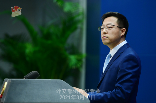 Zhao made the remarks at a daily press briefing when asked to comment on a U.S.-Japan joint statement, which was issued after "2+2" talks on Tuesday between the foreign and defense ministers the United States and Japan. The joint statement expressed the two countries' concerns over multiple issues related to China.