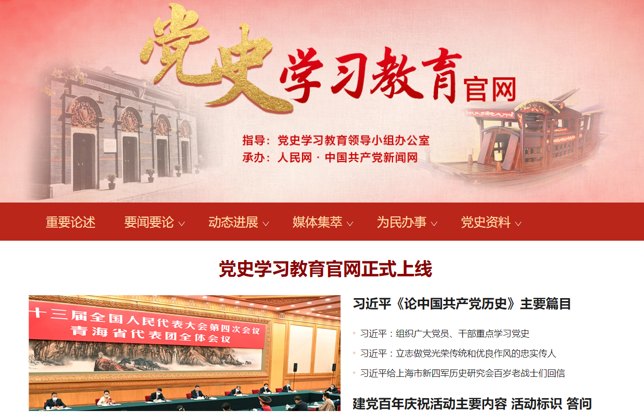 Screenshot of the official website for Communist Party of China (CPC) history learning and education campaign