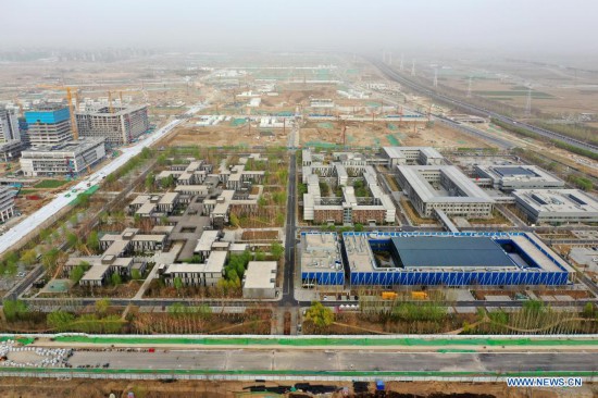 Aerial photo taken on March 30, 2021 shows Xiongan citizen service center in Xiongan New Area, north China's Hebei Province. (Xinhua/Xing Guangli)