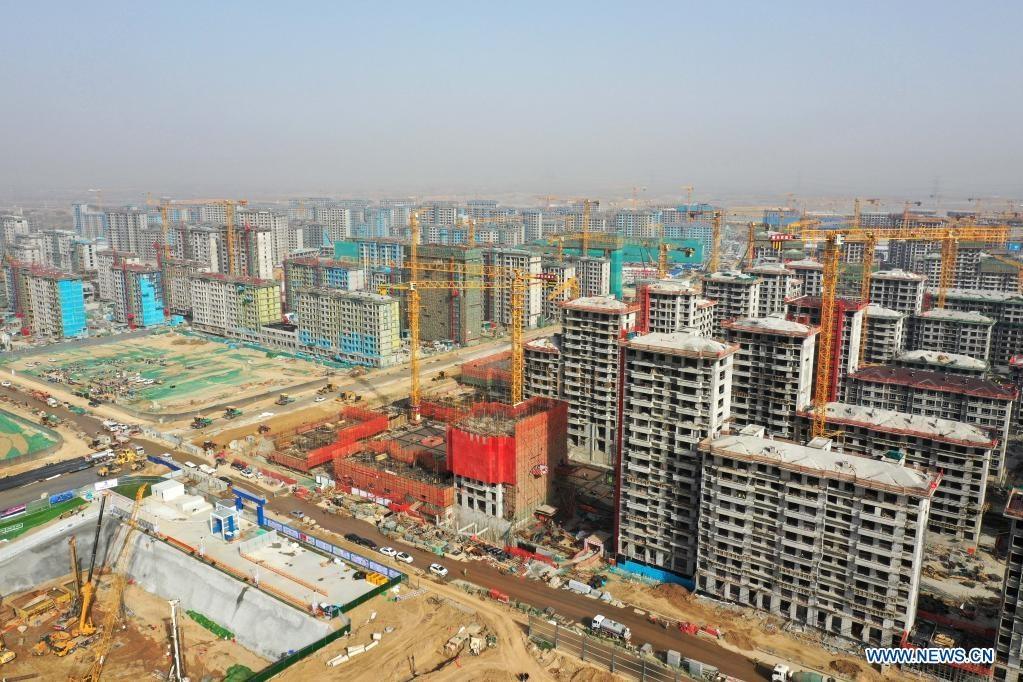 Aerial photo taken on March 30, 2021 shows a construction site in Rongdong area of Xiongan New Area, north China's Hebei Province. (Xinhua/Xing Guangli)