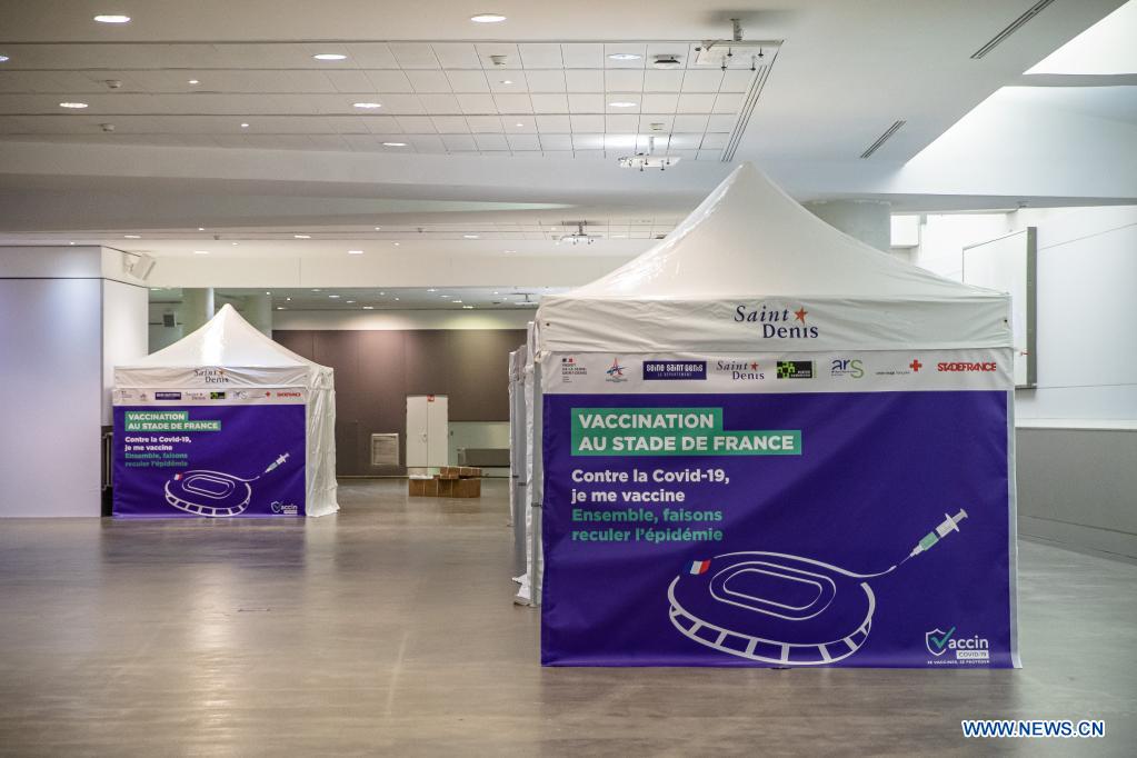 Tents at a new COVID-19 vaccination center are seen in Saint-Denis, France, on March 31, 2021. Starting from mid-April people over 60 in France will be able to get vaccinated, from May 15 the vaccination will be open to people aged between 50 and 60 and from mid-June the age limit will be lifted, said French President Emmanuel Macron on Wednesday. (Photo by Aurelien Morissard/Xinhua)
