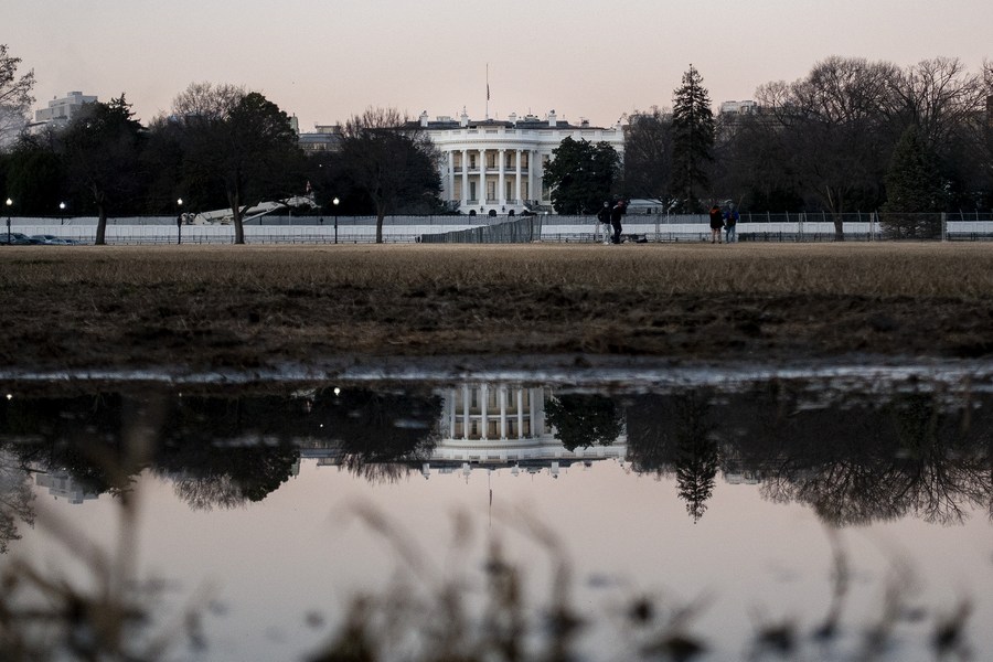 Photo taken on Jan. 12, 2021 shows the White House in Washington, D.C., the United States. (Xinhua/Liu Jie)