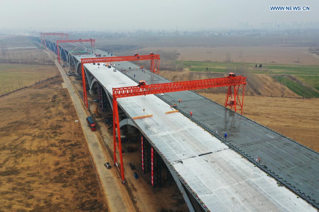 Aerial photo taken on March 19, 2021 shows the Beijing-Xiongan expressway under construction in Xiongan New Area, north China's Hebei Province. The Xiongan New Area has begun its large-scale development and construction, with more than 100,000 constructors working on over 120 major projects in the area. The "city of the future" is greeting a brand new look day by day. (Xinhua/Mu Yu)
