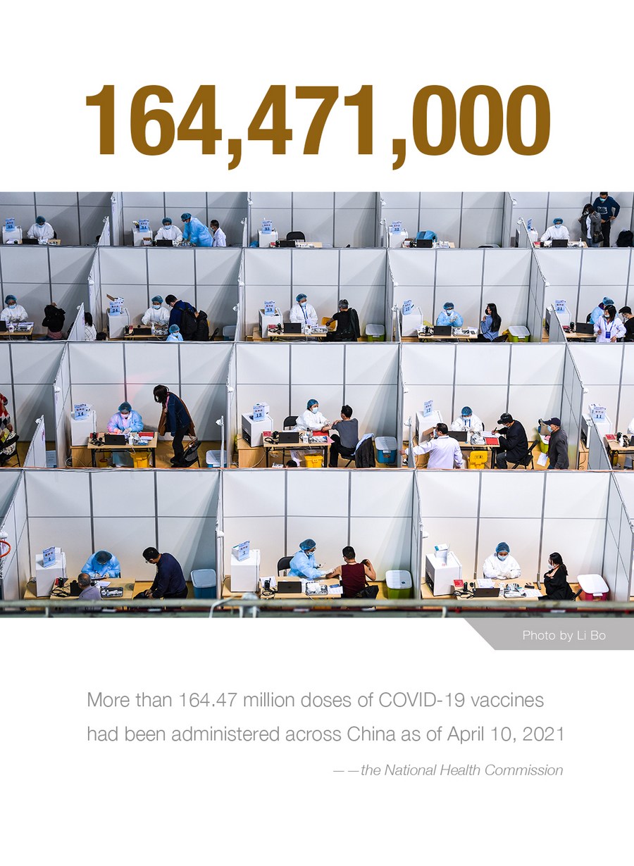 BEIJING, April 11 (Xinhua) -- More than 164.47 million doses of COVID-19 vaccines had been administered across China as of Saturday, the National Health Commission said Sunday.