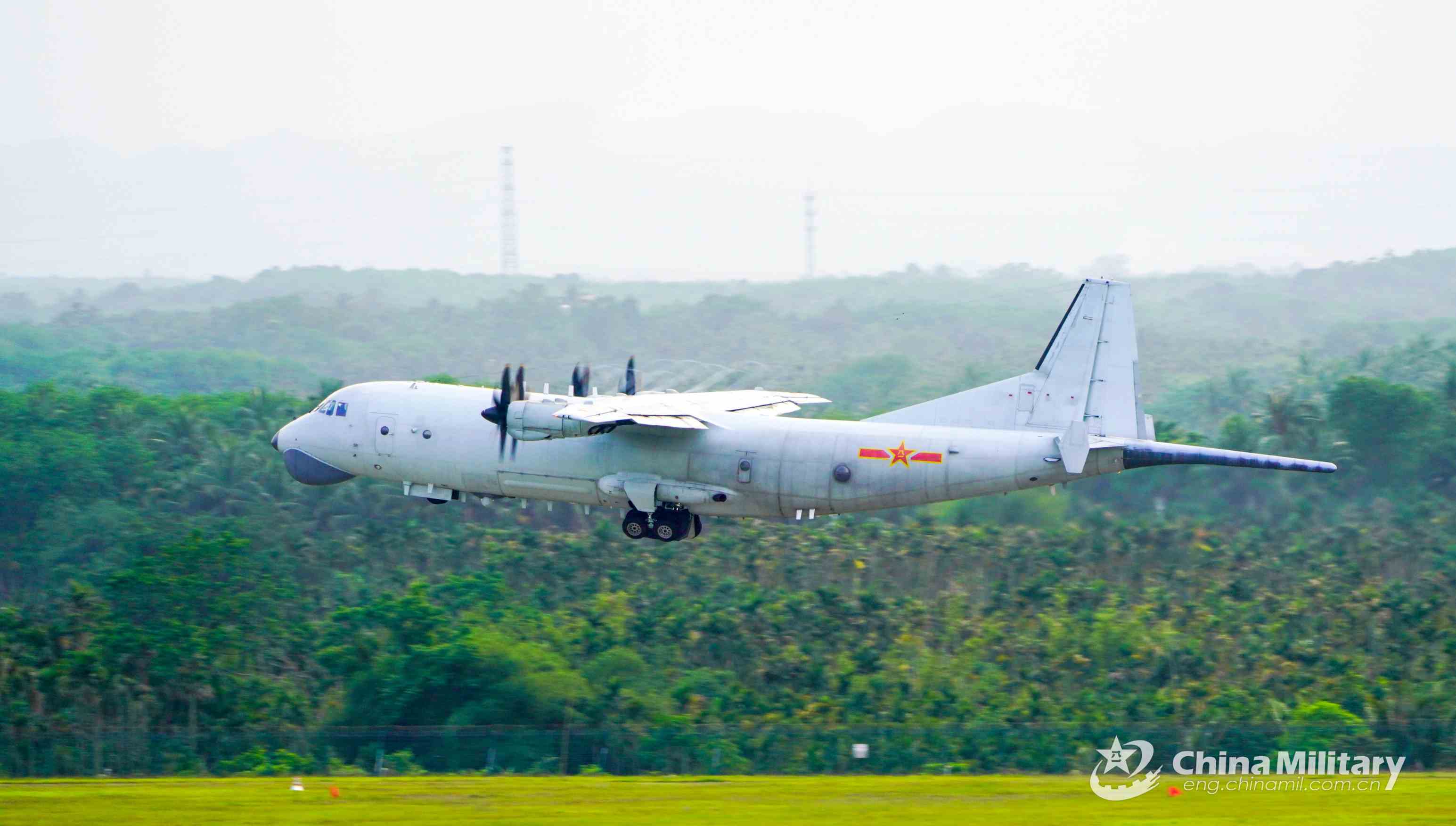 An anti-submarine patrol aircraft attached to an aviation regiment with the navy under the PLA Southern Theater Command takes off from the runway during a submarine search training exercise in the middle of March, 2021. (eng.chinamil.com.cn/Photo by Zhang Yingkai)