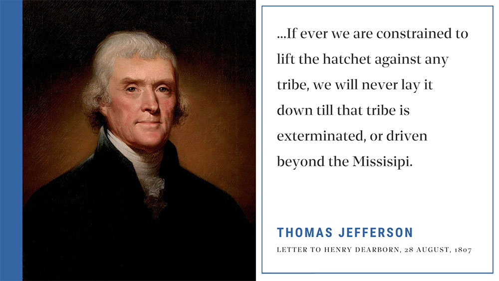 Thomas Jefferson, a primary author of the Declaration of Independence, was an advocate for the assimilation and forceful relocation of the Native tribes.