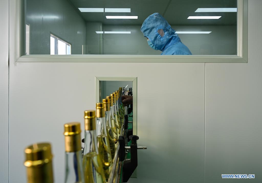 A staff member works at a tree peony planting technology development company in Tongling City, east China's Anhui Province, April 15, 2021. Tree peony, a long-lived deciduous woody shrub native to China, has many hidden economic potentials under its gorgeous appearance. Tree peony planting, which has a history of more than 1,600 years at Fenghuang Mountain in Tongling City, east China's Anhui Province, has become a new driving force for this city's economic development. (Xinhua/Han Xu)