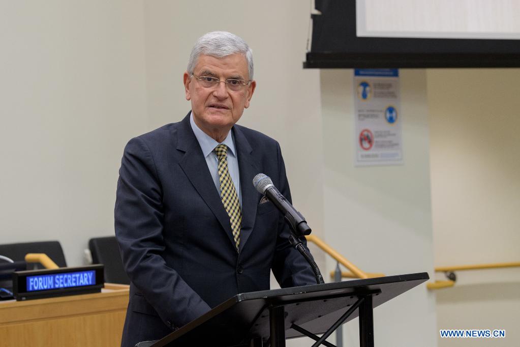 Volkan Bozkir, president of the 75th session of the United Nations General Assembly (UNGA), addresses the opening ceremony of the 20th session of the United Nations Permanent Forum on Indigenous Issues at the UN headquarters in New York April 19, 2021. (Manuel Elias/UN Photo/Handout via Xinhua)