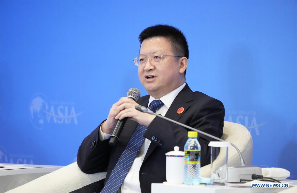 Wang Yang, chief planner of China's Ministry of Transport and Director General of Comprehensive Planning Department, speaks at a sub-forum themed on "Accelerate Infrastructure Connection to Unleash Development Potentials" during Boao Forum for Asia annual conference in Boao, south China's Hainan Province, on April 21, 2021. (Xinhua/Cai Yang)