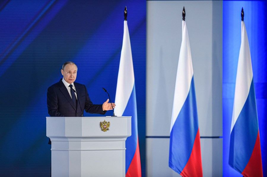 MOSCOW, April 21 (Xinhua) -- The share of modern weapons in Russia's nuclear triad will exceed 88 percent this year, Russian President Vladimir Putin said Wednesday in his annual address to the Federal Assembly.