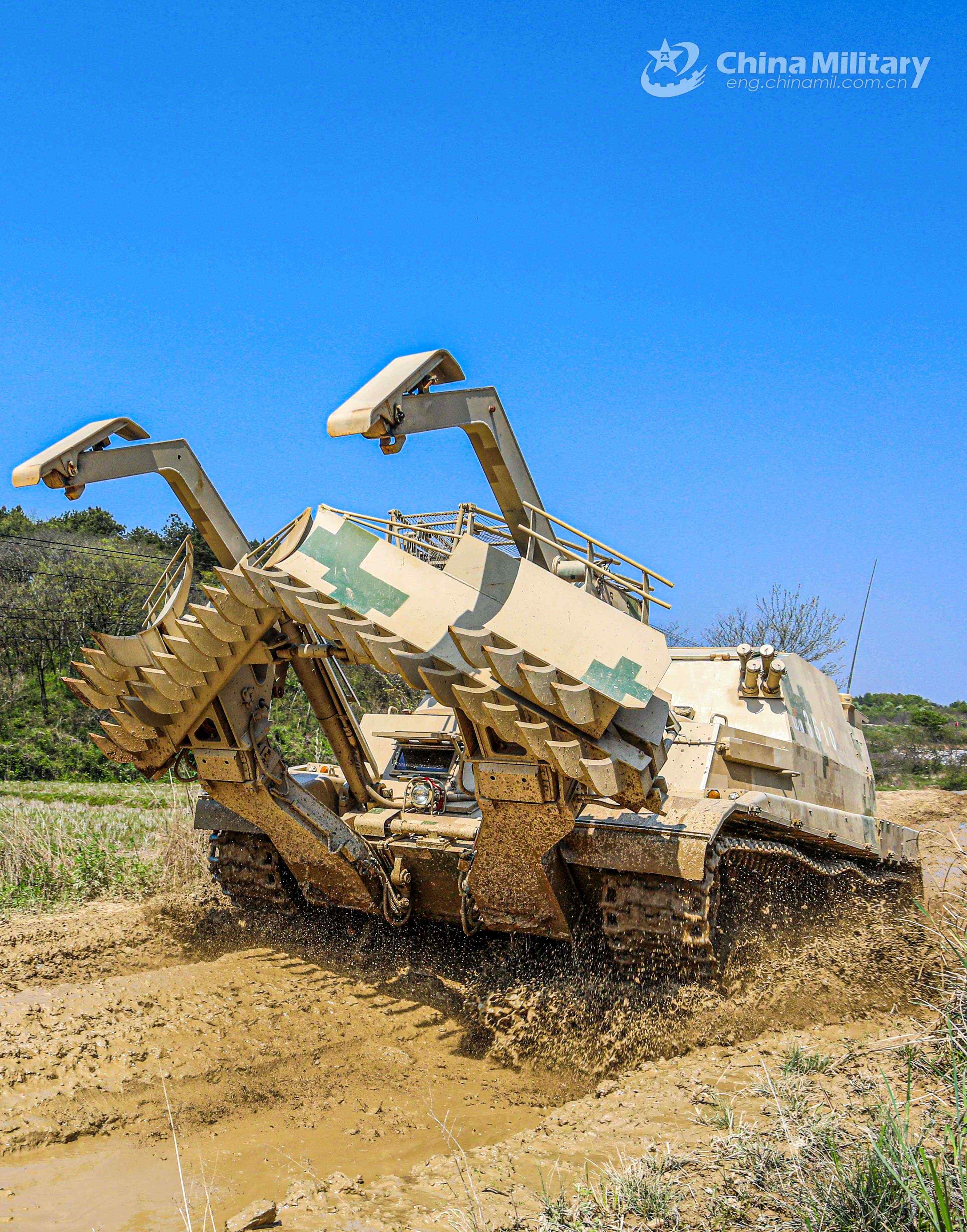 Armored minesweeping vehicle attached to the armored detachment of a brigade under the PLA 72nd Group Army carries out a driving skill training exercise on April 12, 2021. (eng.chinamil.com.cn/Photo by Zhang Mao)