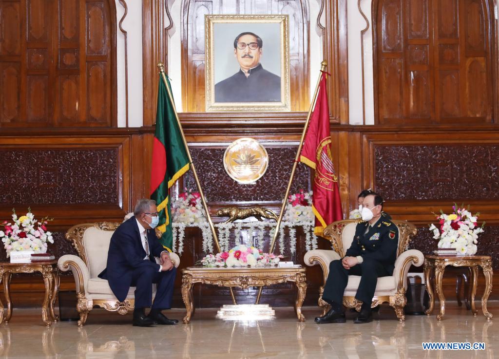 DHAKA, April 27 (Xinhua) -- Bangladesh's President Abdul Hamid on Tuesday met with visiting Chinese State Councilor and Minister of National Defense Wei Fenghe here and the two sides agreed to advance the bilateral military cooperation.