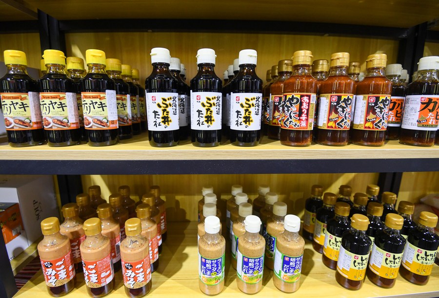 Photo taken on Nov. 3, 2020 shows seasonings from Japan's Hokkaido at the Food and Agricultural Products exhibition area of the 3rd China International Import Expo (CIIE) in Shanghai, east China. (Xinhua/Chen Yehua)