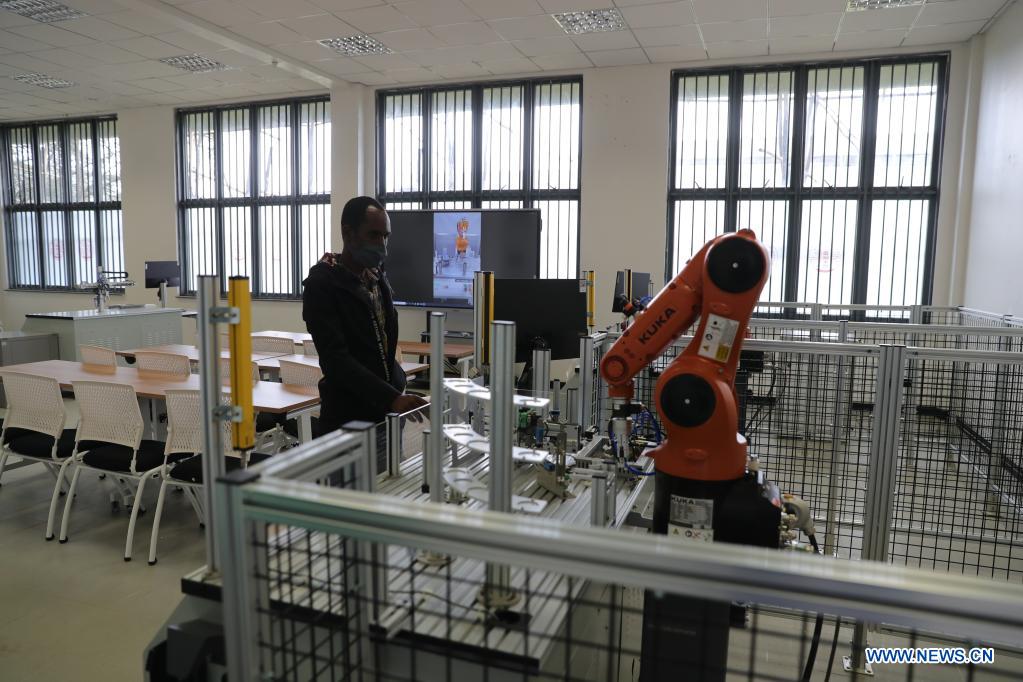 Photo taken on April 28, 2021 shows the interior of Ethiopian Luban Workshop at Ethiopian Technical University in Addis Ababa, Ethiopia. China on Wednesday launched the Ethiopian Luban Workshop aiming to provide high-end technical skills training to help college students meet the requirements of the emerging global market. (Xinhua/Wang Ping)