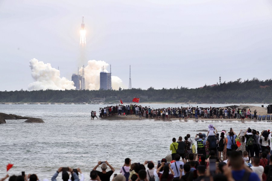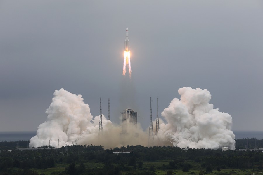 The Long March-5B Y2 rocket, carrying the Tianhe module, blasts off from the Wenchang Spacecraft Launch Site in south China's Hainan Province, April 29, 2021. (Xinhua/Ju Zhenhua)