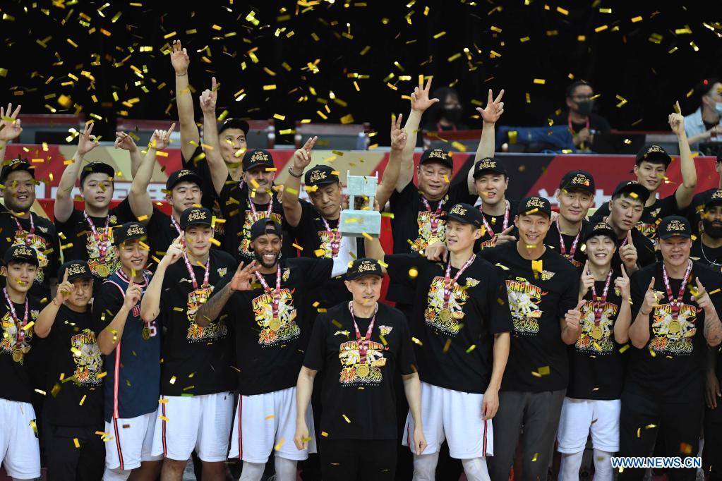 ZHUJI, China, May 1 (Xinhua) -- Already unparalleled in winning their 10th Chinese Basketball Association (CBA) title last season, Guangdong Southern Tigers repeated their triumph over Liaoning Flying Leopards and refreshed their own record after winning a historic 11th CBA championship.