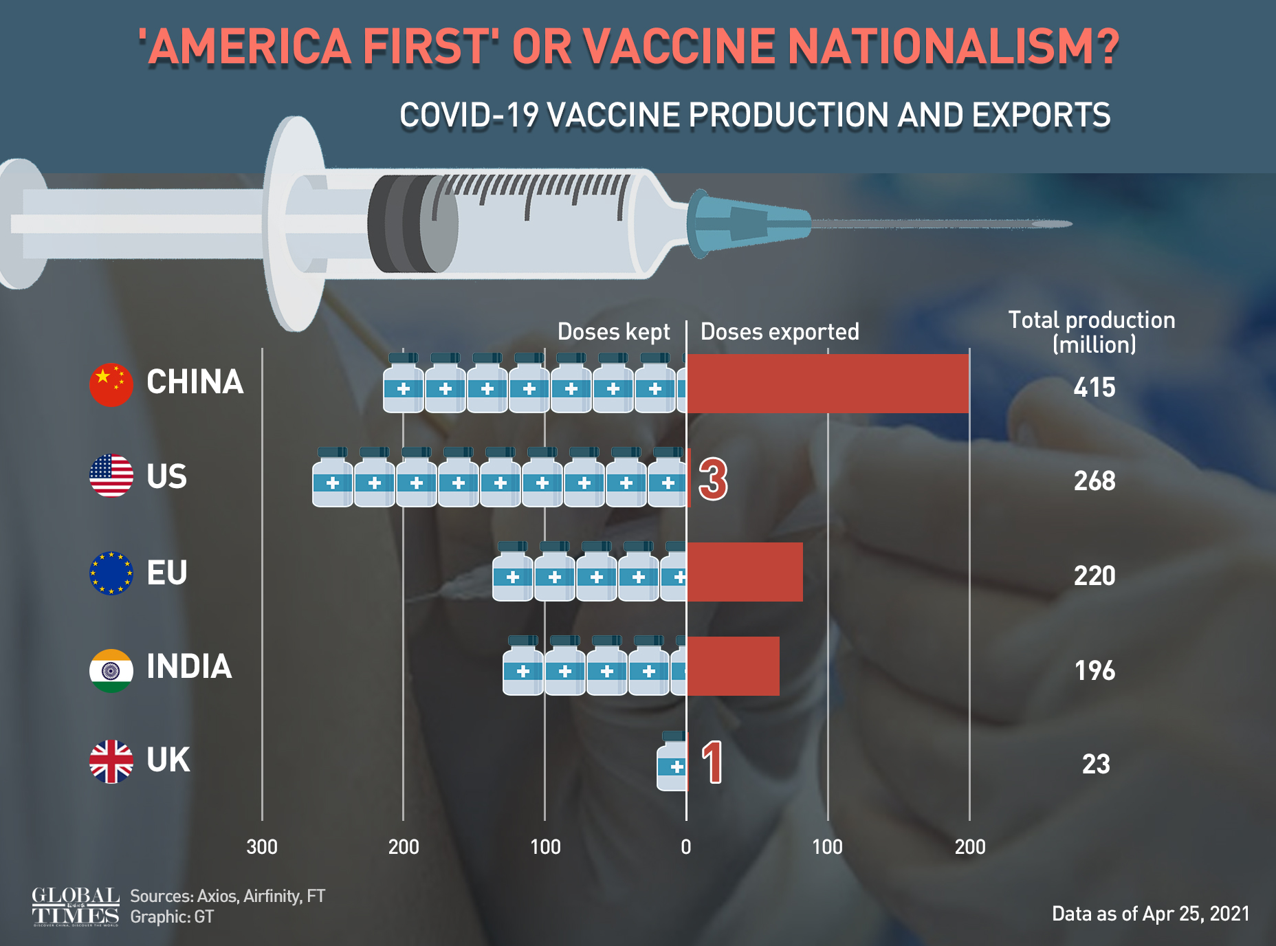 'America First' or vaccine nationalism? COVID-19 vaccine production and exports. Graphic: GT