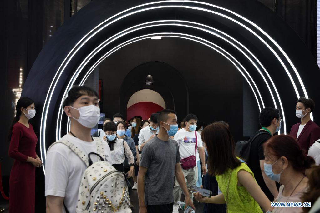 People visit the jewelry exhibition area at the first China International Consumer Products Expo in Haikou, capital of south China's Hainan Province, May 10, 2021. The expo greeted its public day on Monday. (Xinhua/Jin Liwang)