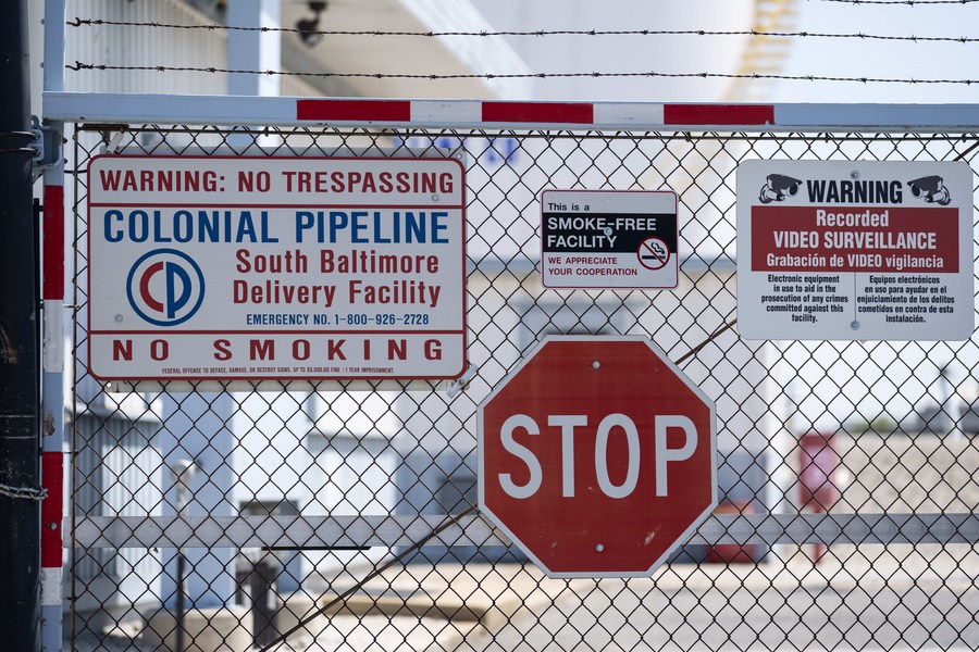 Photo taken on May 11, 2021 shows a Colonial Pipeline facility in Baltimore, Maryland, the United States. (Xinhua/Liu Jie)