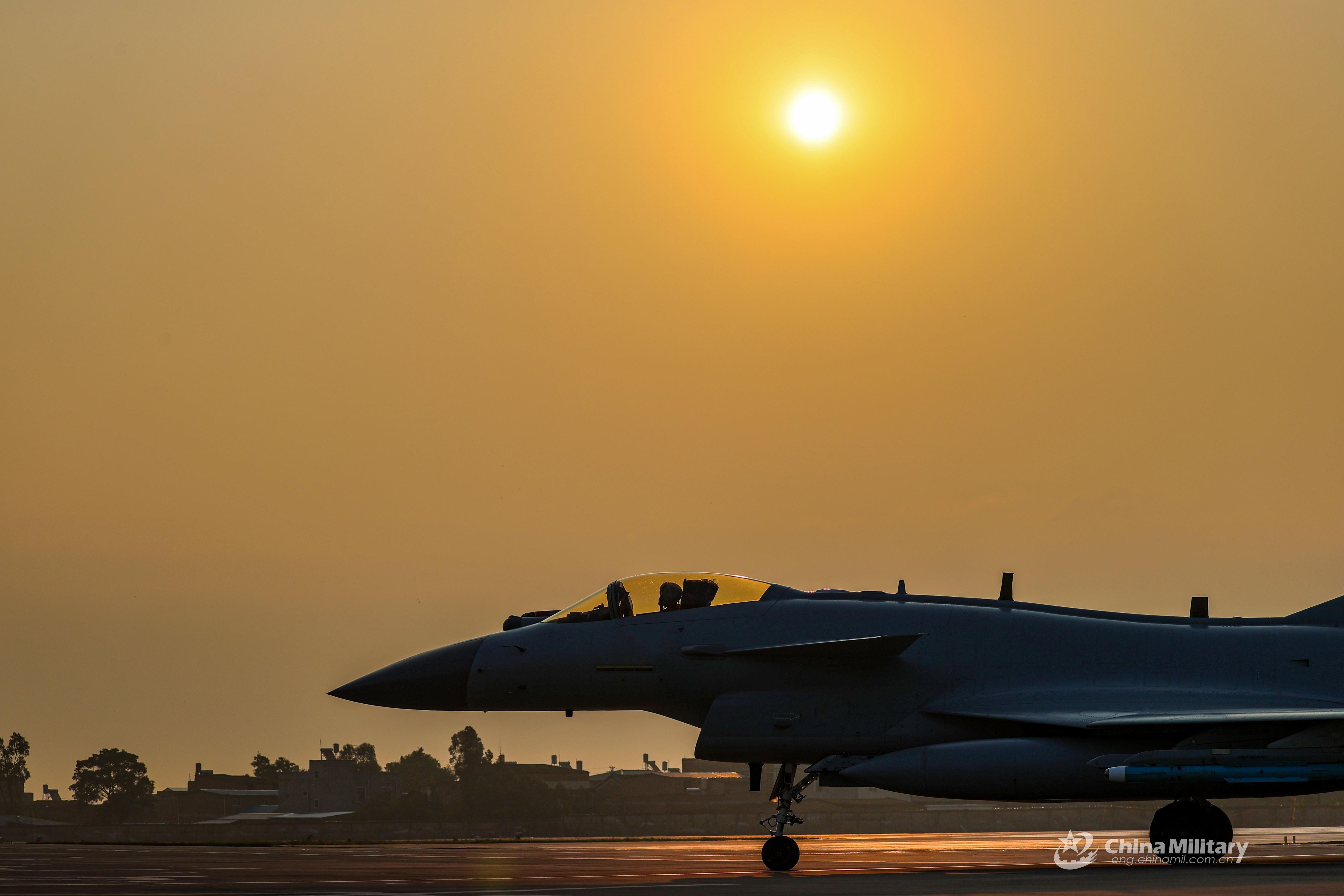 Fighter jets attached to an air force aviation brigade under the PLA Southern Theater Command taxi on the runway before a flight training exercise on April 20, 2021. (eng.chinamil.com.cn/Photo by Wang Guoyun)