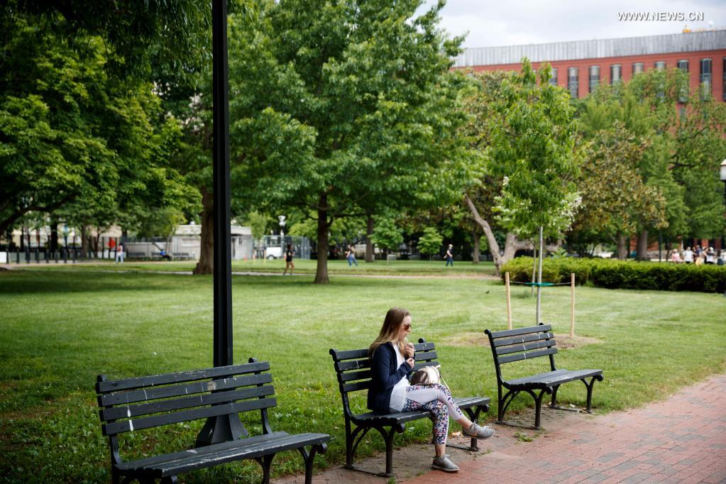 A woman is seen at Lafayette Square near the White House in Washington, D.C., the United States, May 17, 2021. U.S. state officials are increasingly turning to cash and material incentives as demand for coronavirus vaccines slows down, local media reported Monday. (Photo by Ting Shen/Xinhua)