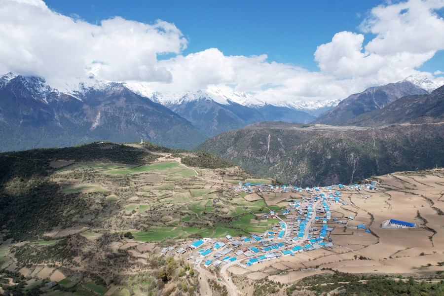 Aerial photo taken on May 15, 2021 shows the scenery in Gyirong County, southwest China's Tibet Autonomous Region. (Xinhua/Sun Ruibo)