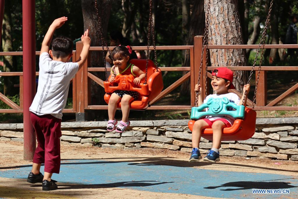 Children play at a park in Istanbul, Turkey, May 25, 2021. (Xinhua/Xu Suhui)