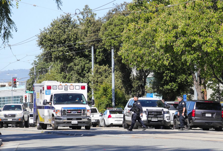 Investigators work at the scene of a mass shooting in San Jose, California, the United States, on May 26, 2021. (Photo by Dong Xudong/Xinhua)