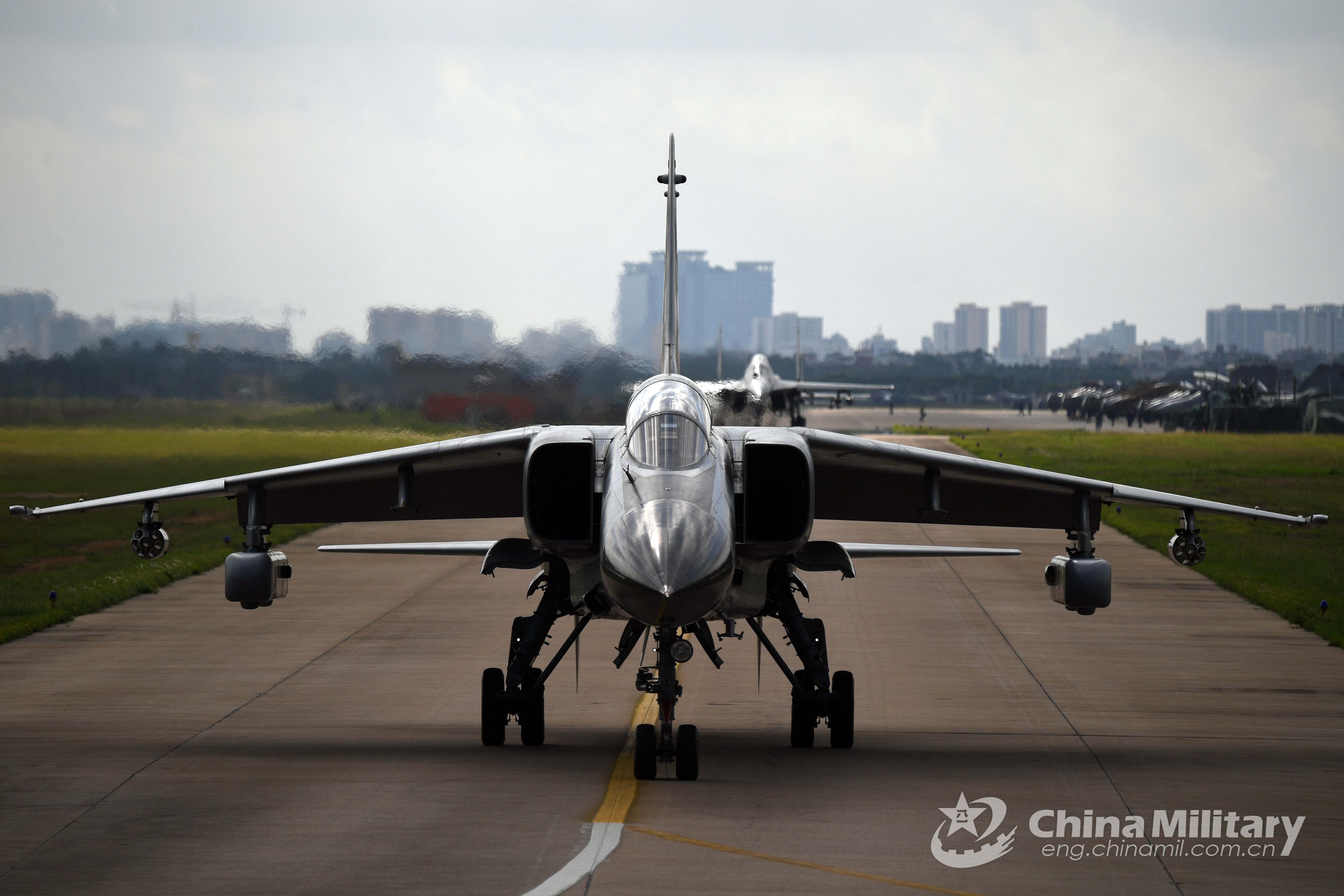 A fighter jet attached to an air force base under the PLA Southern Theater Command taxis on the runway of a military airport in south China before takeoff for a joint training exercise involving multi-type fighter jets on May 14, 2021. (eng.chinamil.com.cn/Photo by Fan Yishu)