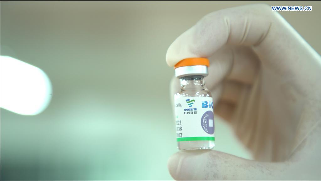 Photo taken on June 1, 2021 shows a vial of the Sinopharm vaccine in Beijing, capital of China. China on Tuesday said the first batch of Chinese vaccines supplied to COVAX officially rolled off the production line, which is another important reflection of China's commitment to making its COVID-19 vaccines global public goods with concrete actions. (Xinhua)