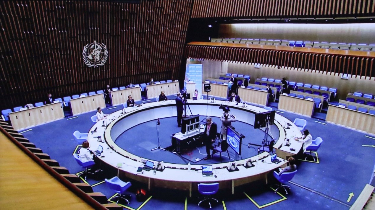 Photo taken on May 24, 2021, shows the live stream of the 74th World Health Assembly (WHA) held at the headquarters of the World Health Organization in Geneva, Switzerland. (Photo/Xinhua)